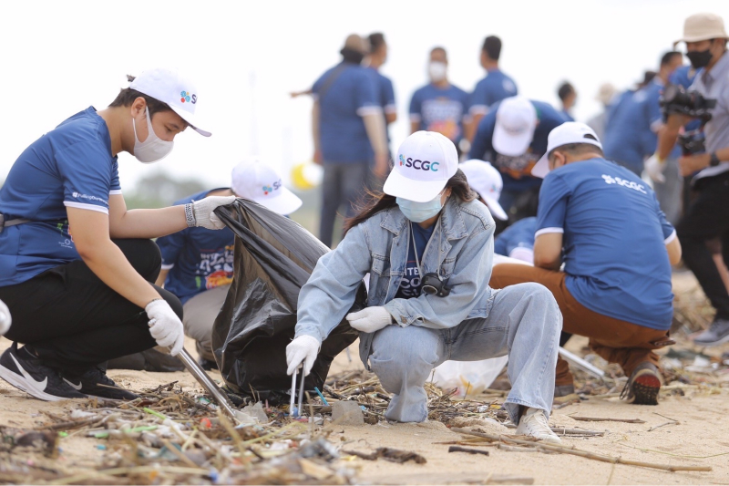 SCGC's Coastal Development and Conservation Project has been continuously driven for over 10 years, starting in 2005. This initiative collaborates with coastal communities, local municipalities, businesses in the Map Ta Phut Industrial Estate, and SCGC employees. The efforts include beach cleanup across various sub-districts, including Mueang, Ban Chang, Phe, and Klaeng in Rayong Province. This is to collect the marine debris that washes ashore seasonally. Additionally, we join forces with our partners to participate in the annual International Coastal Cleanup in Rayong Province, fostering awareness that waste can be a resource. We also promote proper waste sorting and disposal practices to reduce marine litter.