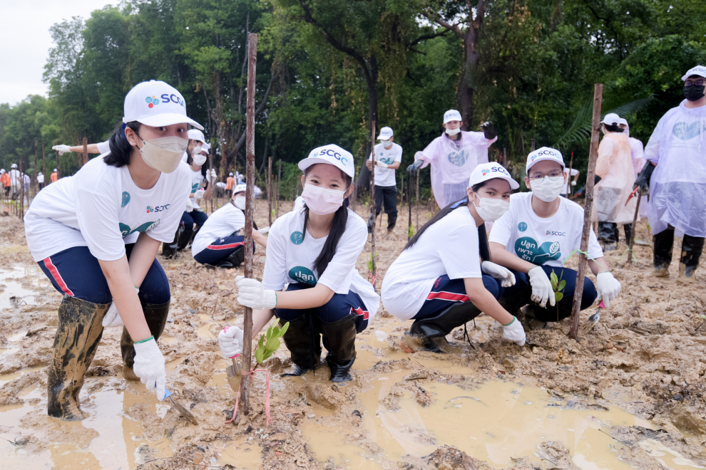 "Plant-Cultivate-Protect" campaign,which increases the green spaces in Rayong Province. In collaboration with government agencies, local authorities, the private sector, educational institutions, youths, local communities, and over 9,000 volunteers, the initiative has been active since 2018. It focuses on planting mangrove and terrestrial forests, cultivating saplings, and providing ongoing care, with 368,729 trees planted to date.