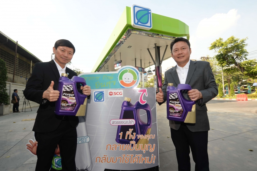 The project “Greenovative Lube Packaging” is a new recycling model for used lubricant containers based on a circular economy’s resource efficiency approach. The used lubricant containers will be collected from Bangchak petrol stations and FURiO Care, the lubricant replacement center and will eventually be converted into raw materials for producing new lubricant packages. Chemicals Business, SCG, a developer and a manufacturer of special-grade high-density polyethylene will be collaborating with relevant parties throughout the product lifecycle from HDPE producers, packaging moulders, product owners, service providers, end-users to recyclers.