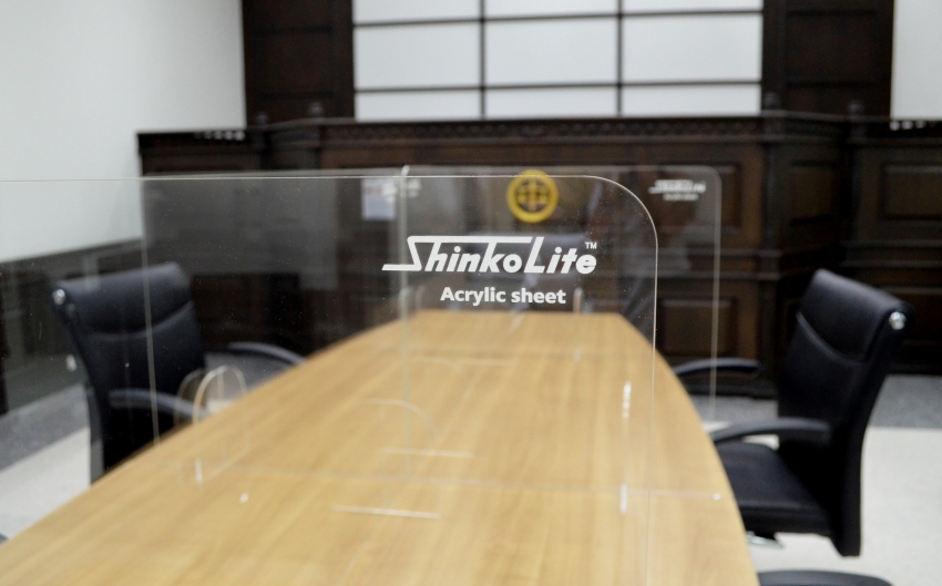 , said, "The Labour Court, Region 2, Rayong province previously used other materials to create the partition shields to maintain social distancing, but such setup did diminish the aesthetic of the courtroom. The 'SHINKOLITE' team has offered to design and install the acrylic aerosol partition in the courtroom which has solved the aesthetic dilemma thanks to the transparency of the acrylic sheet and neat setup. The installer team provided onsite measurement and installation services for the partition shields designed to fit the setting and aid fast installation. This is a perfect solution that offers a combination of safety and aesthetic elegance. Furthermore, SHINKOLITE's acrylic partitions are also installed in the mediation conference rooms to help reduce the risk of COVID-19 infection and maintain social distancing among judges, court staff, and people accessing court services."