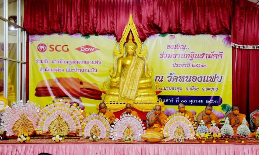 Rayong - 10 October 2020 Chemicals Business, SCG, Dow Thailand Group, Map Ta Phut Municipality, and Nong Fab community organized an annual Kathin ceremony 2020. This year, the ceremony was themed “Reducing Global Warming” to raise the environmental awareness of source reduction to limit carbon dioxide emissions, one of the major contributors to global warming, and promote religious activities and long-standing traditions.