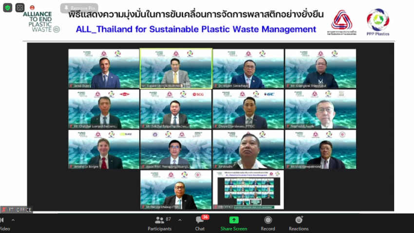 Bangkok — 15 June 2021 - The Federation of Thai Industries, PPP Plastics and the Alliance to End Plastic waste (AEPW) jointly launched the ALL_Thailand project for sustainable plastic management with Mr. Supant Mongkolsuthree, Chairman, The Federation of Thai Industries, Dr. Wijarn Simachaya, Chairman, Thailand PPP Plastics, and Mr. Jacob Duer, President and CEO, Alliance to End Plastic Waste: AEPW, presided over the ceremony with executives from the main sponsors of PPP Plastics, namely Dow Thailand Group, Chemicals Business, SCG, PTT Global Chemical Public Company Limited, Nestle (Thailand) Co., Ltd., and SUEZ.