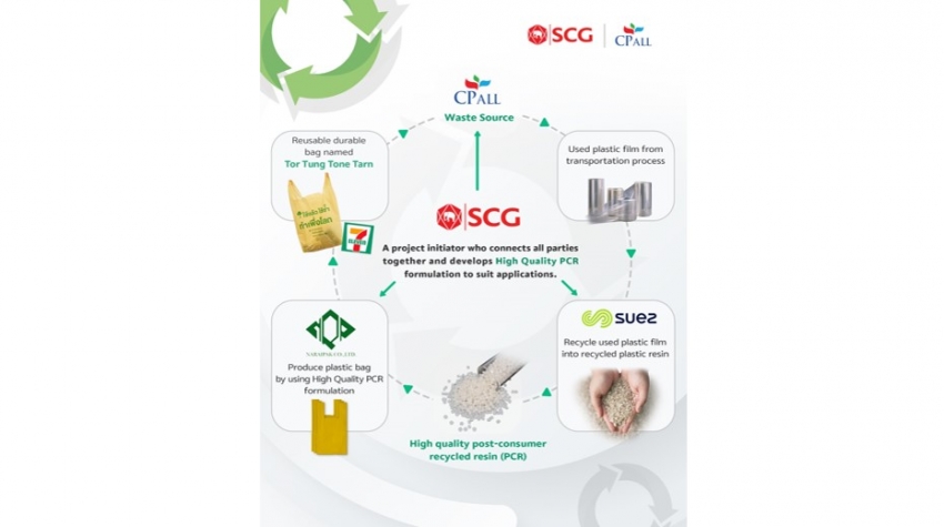 Sakchai Patiparnpreechavud, Vice President of SCG Chemicals, said, "This is a key milestone for SCG Chemicals. We join forces with partners to maximize resource efficiency based on the circular economy via a closed-loop recycling model, which involves recycling one product entirely into a new one. The process begins with recycling post-consumer plastic in the CP All logistic process into high-quality PCR under the name SCG GREEN POLYMERTM using a proprietary formulation developed by SCG Chemicals. The product is a bag manufactured from recycled plastic resin that is both robust and reusable. One of the partners, SCGP reXycle, is in charge of collecting and transporting used plastics. SCG Chemicals is responsible for engaging all partners in the value chain and developing the closed-loop recycling system. This strategy is intended to be expanded to other organizations in the future to reduce the country's waste and greenhouse gas emissions sustainably.
