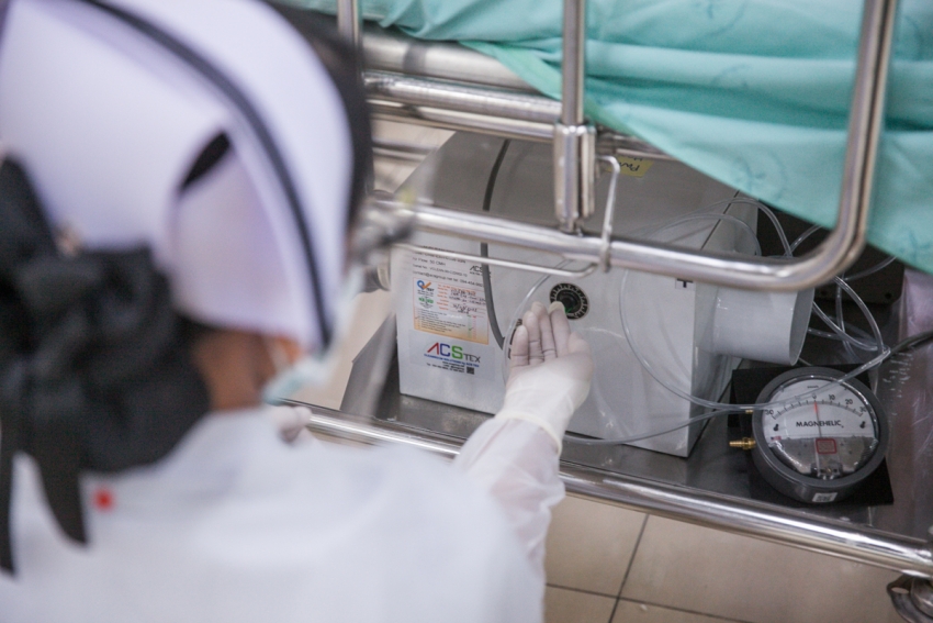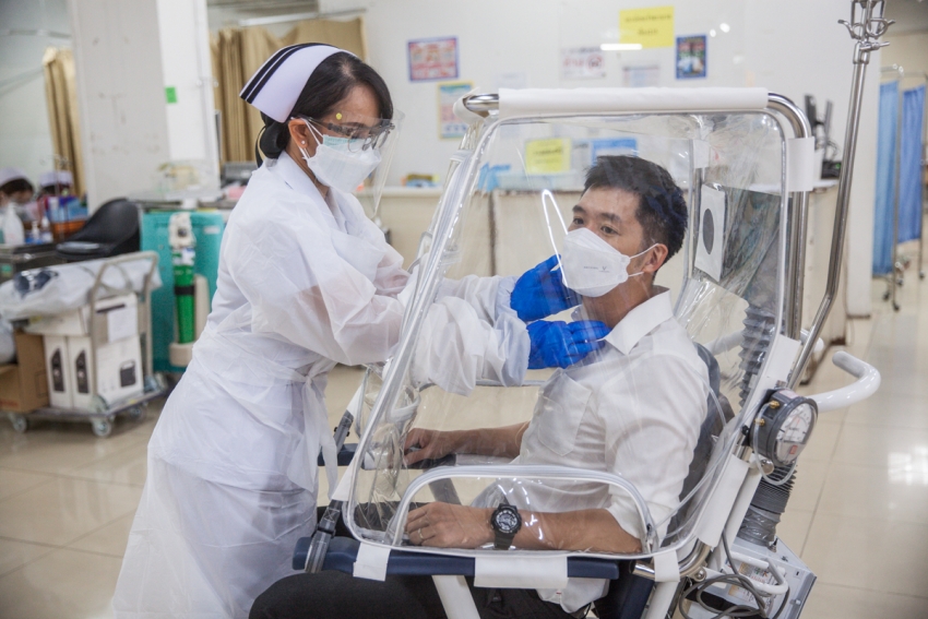 Nongnuch Imsap, Head Nurse of Medicine Unit at Siriraj Hospital, recounted the problems facing her team. “Now, our medicine unit is faced with 2-3 COVID-19 cases every day. Sometimes, we have as many as five cases. However, we do not have sufficient negative pressure equipment that can prevent germ dispersal. With more such devices, we would be able to better manager at-risk patients.”