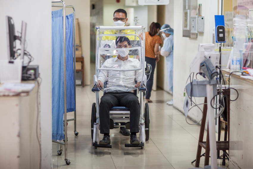 The three latest types of Mobile Isolation Units that SCGC has developed and given to Siriraj Hospital are 1) Negative Pressure Isolation Hood, which prevents the dispersal of pathogens while waiting for consultation; 2) Negative Pressure Isolation Wheelchair, which curbs the spread of germs during patient transfer; and 3) Positive Pressure Isolation Cocoon, additional equipment that provides healthcare professionals safety and a private space during breaks.