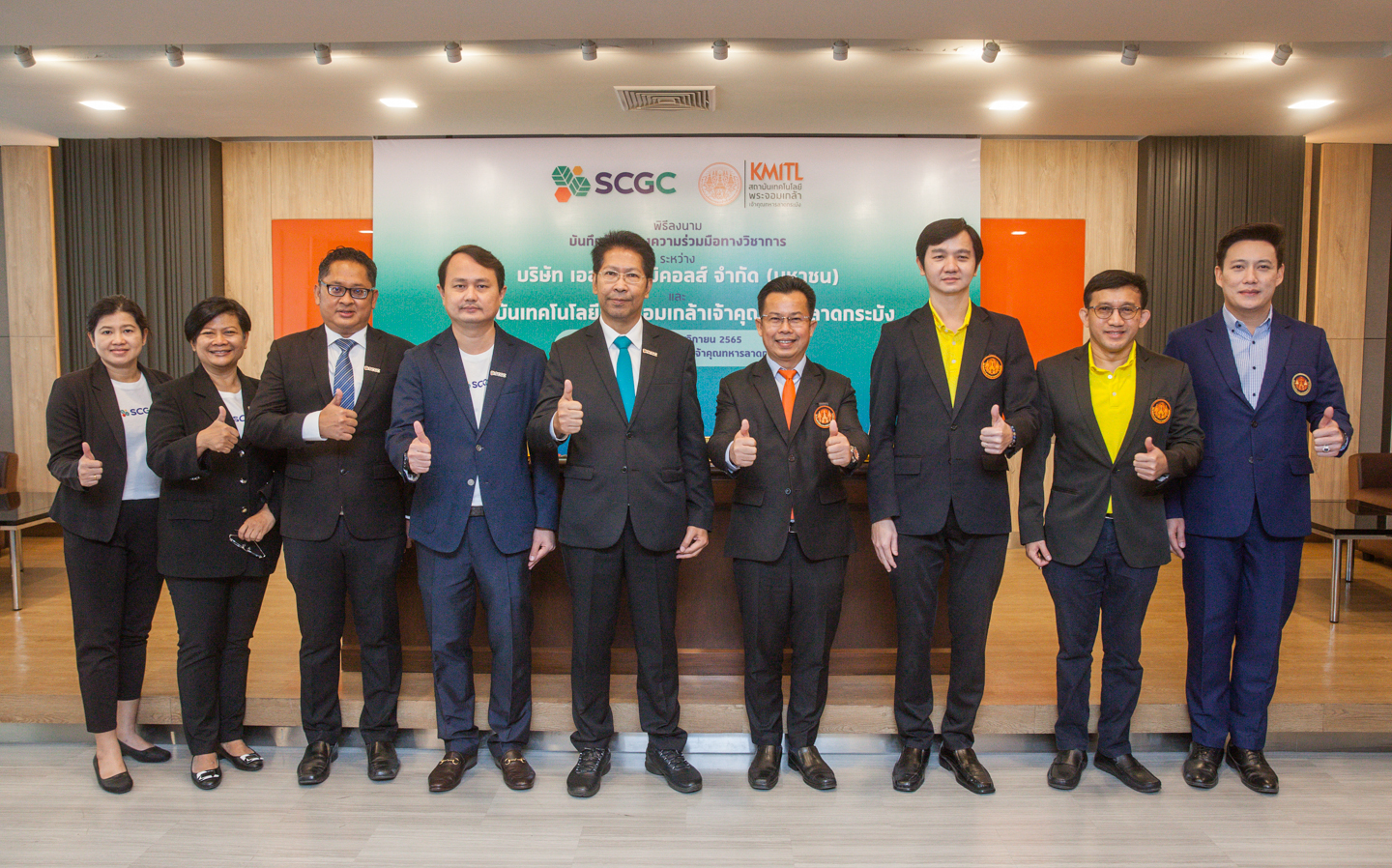 Bangkok - 16 November 2022 SCG Chemicals Public Company Limited (SCGC) and King Mongkut's Institute of Technology Ladkrabang (KMITL) have signed a memorandum of understanding on academic collaboration to build upon technologies and intellectual properties initially developed by KMITL towards commercial research in order to promote scientific and technological advancement and drive innovations that respond to global megatrends. As a regional leader of the petrochemical business for sustainability, SCGC is ready to push forward research and create new business opportunities that will lead to tangible and eco-friendly innovations in order to enhance the quality of life and mitigate the impacts of global warming. To this end, SCGC will be leveraging the capabilities of its expert team at i2P Center (Ideas to Products) in combination with KMITL’s academic rigor and tech research prowess, which will contribute to significant innovation shifts in the future.