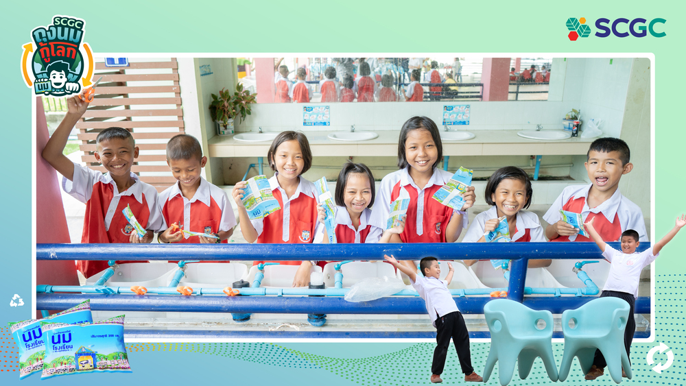 To replicate the success of the Upcycling Milk Pouch Project on a larger scale, SCGC has been working in collaboration with the Office of the Basic Education Commission (OBEC) and the Department of Environmental Quality Promotion (DEQP) to drive the Eco-School Project to achieve the Zero Waste School goal of the Ministry of Natural Resources and Environment and the Ministry of Education. In addition, SCGC has joined forces with various private organizations to recover used plastics and put it back in circulation. At present, the project has over 1,700 participating schools across 33 provinces and has put over one million milk pouches through the recycling process (as of 31 March 2022).