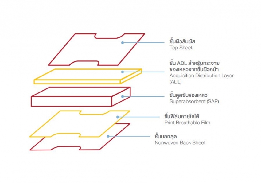 SCG Chemicals has developed EL-Lene H103S plastic pellets specifically for the production of bi-component fiber. In-depth research and development has resulted in a fiber that is softer and silkier than PP spunbond fiber. Apart from that, the bicomponent fiber also has other winning properties namely good elasticity, water absorbency and air permeability which re- duces the dampness of the nonwoven fabric top sheet of diapers and sanitary napkins. Also, it does not leave behind residues that may cause irritation to the skin.