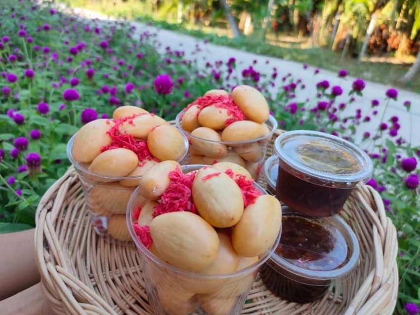 - Desserts from Baan Khon Wan, Nern Payom Community: For those who are looking for a little sweetness in their lives, this shop offers a little bit of everything, from sticky rice with mango, durian, and various other toppings to even mango sticky rice in the form of cake. The sticky rice here is made fresh daily and with only natural colors. Their coconut jelly cake is not only a unique masterpiece in appearance but also fragrant with coconut milk and fresh coconut water. And finally, the santol is deliciously sour and spicy with toppings like sweet fish sauce and shrimp paste.