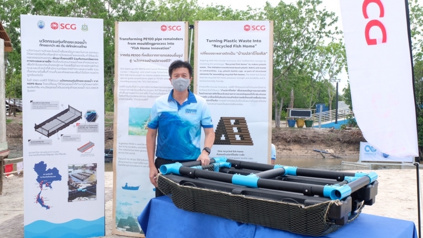 ในส่วนของความร่วมมือในการจัดการกับขยะทะเล ซึ่งมีปริมาณสูงถึง 7.36 ล้านตัน จากข้อมูลของกรมทรัพยากรทางทะเลและชายฝั่ง ปี 2561 เอสซีจีจับมือกับกรมทรัพยากรทางทะเลและชายฝั่ง (ทช.) พัฒนา “นวัตกรรมทุ่นกักขยะลอยน้ำ (SCG-DMCR Litter Trap)” ที่ช่วยยกระดับการแก้ไขปัญหาขยะในทะเลได้มีประสิทธิภาพมากยิ่งขึ้น