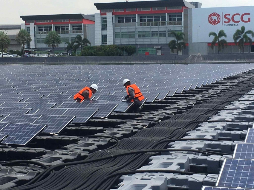 เอสซีจีเล็งเห็นโอกาสในการต่อยอดองค์ความรู้และความเชี่ยวชาญ เพื่อตอบสนองความต้องการของผู้บริโภคในสังคมและส่งเสริมความยั่งยืนด้านพลังงานและสิ่งแวดล้อม จึงได้คิดค้นและพัฒนา โซลาร์ฟาร์มลอยน้ำแบบครบวงจร (Floating Solar Solutions) ขึ้นเป็นรายแรกในประเทศไทย