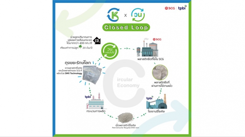 Apart from being a project demonstrating the substantial benefits of circular economy principles, the Closed-Loop Trash Bag is another significant model that exemplifies SCG's fundamental premise of "Collaboration is Key." The team behind the project consists of staff from several units within Chemicals Business, SCG, such as Materials Management, Logistic & Admin Sourcing, and Circular Economy Business, as well as non-corporate partners such as TPBI, the key partner that shares a mutual commitment to the circular economy business.  The TPBI’s Won project will collect and transport the post-use plastic from the facility to TPBI. Using SCG formulations, the plastic will be recycled into recycled plastic resins and turned into trash bags.