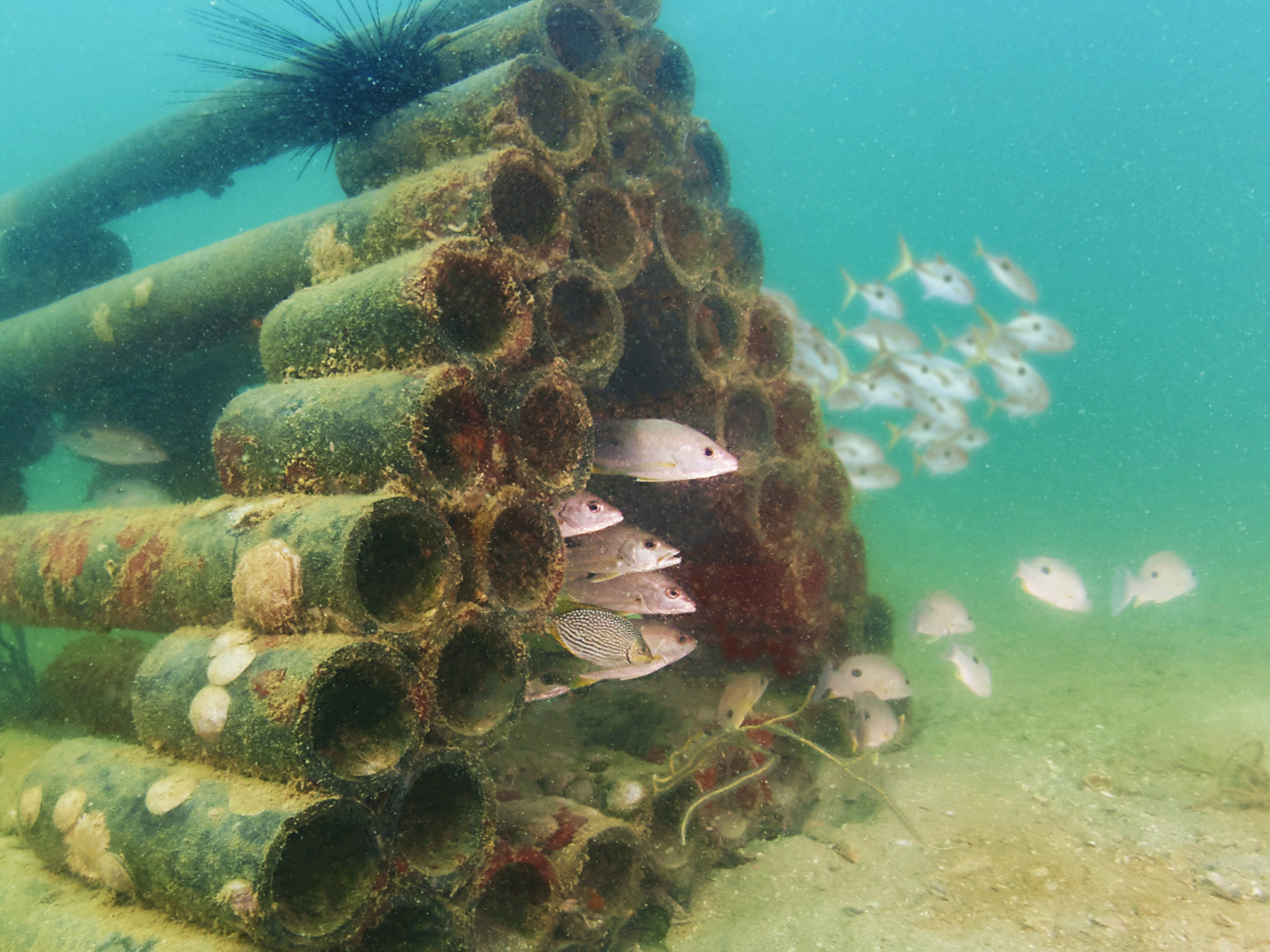 SCGC’s fish homes are constructed out of PE100 pipes, made of special-grade high-density polyethylene (HDPE) left over from the forming process in its manufacturing plants. The resin has been tested by SCGC, VTT Technical Research Center of Finland, and other institutions to be safe, free of hazardous chemicals, and eco-friendly as well as resistant to corrosion and high pressure, giving them a useful life of over 50 years. The fish home is designed to have the shape of a pyramid so as not to obstruct fishing or pose dangers to marine life.