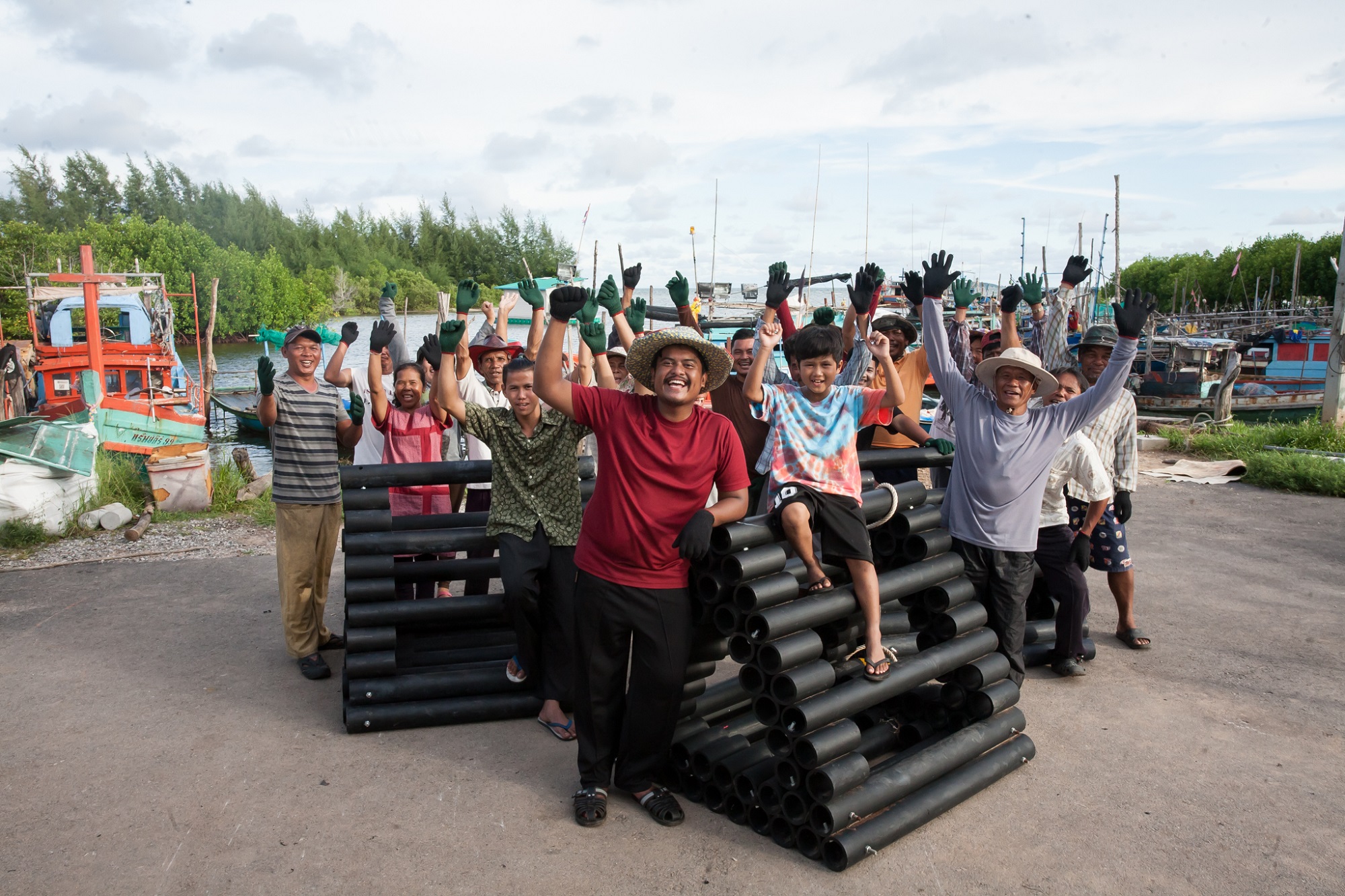 Since the first fish home was installed at the mouth of the Klaeng River in Rayong province in 2012, SCGC has deployed over 2,230 fish homes, creating more than 50 square kilometers of marine conservation areas. This effort has led to collaborations with 43 local fisherfolk groups, providing additional income for more than 930 small-scale fishers in the Rayong coastal area and generating over 9 million baht in annual revenue for the fishing communities (*data from an SROI survey of 10 traditional fishing groups in Rayong province in 2022).