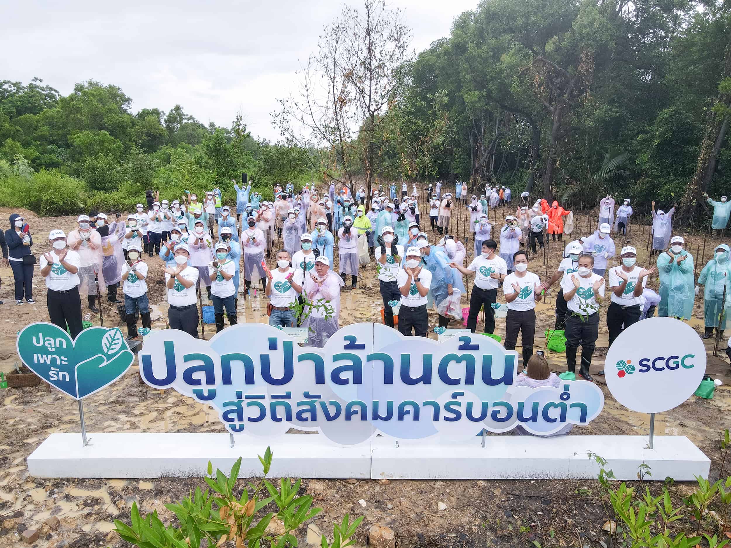 Planting trees: SCGC collaborates with government agencies, the private sector, educational institutions, youth, local communities, and volunteers to restore forests to their abundant state. This is done by planting mangroves, conserving community forests, and continuously planting trees in public areas for the benefit of absorbing carbon dioxide, serving as a large lung for the people in the area, and providing a complete ecosystem for various animals. Initially, SCGC planted 161,100 ต้น mangrove trees and other species in mangrove forest areas, covering 230 rai of land, which can absorb up to 2,189 tons of carbon dioxide This is just the beginning of the mission, as SCGC aims to plant 1 million trees, and the number of seedlings planted in the ground is gradually increasing.