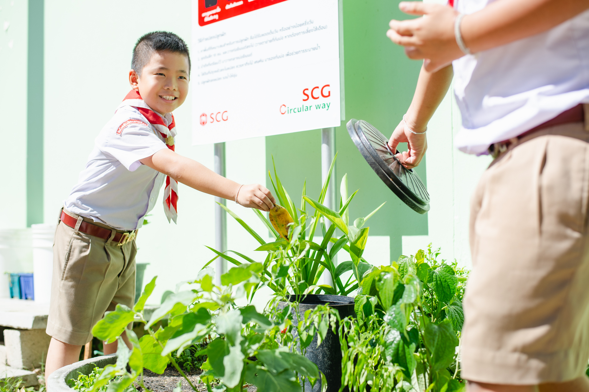 - Innovation for Circular Economy:A crucial concept in waste management and resource circulation for maximum benefit, SCGC has developed innovative environmental resins, or GREEN POLYMER, following the principles of a circular economy, which includes reducing resource use, designing for recyclability, recycling, and creating compostable, renewable and circular resource products. Additionally, there are projects that support the separation and collection of plastic waste, such as the " Upcycling Milk Pouches Project, "which encourages children to separate waste and see the tangible results of their actions by cutting, washing, drying, collecting, and recycling used milk pouches into chairs for use.
