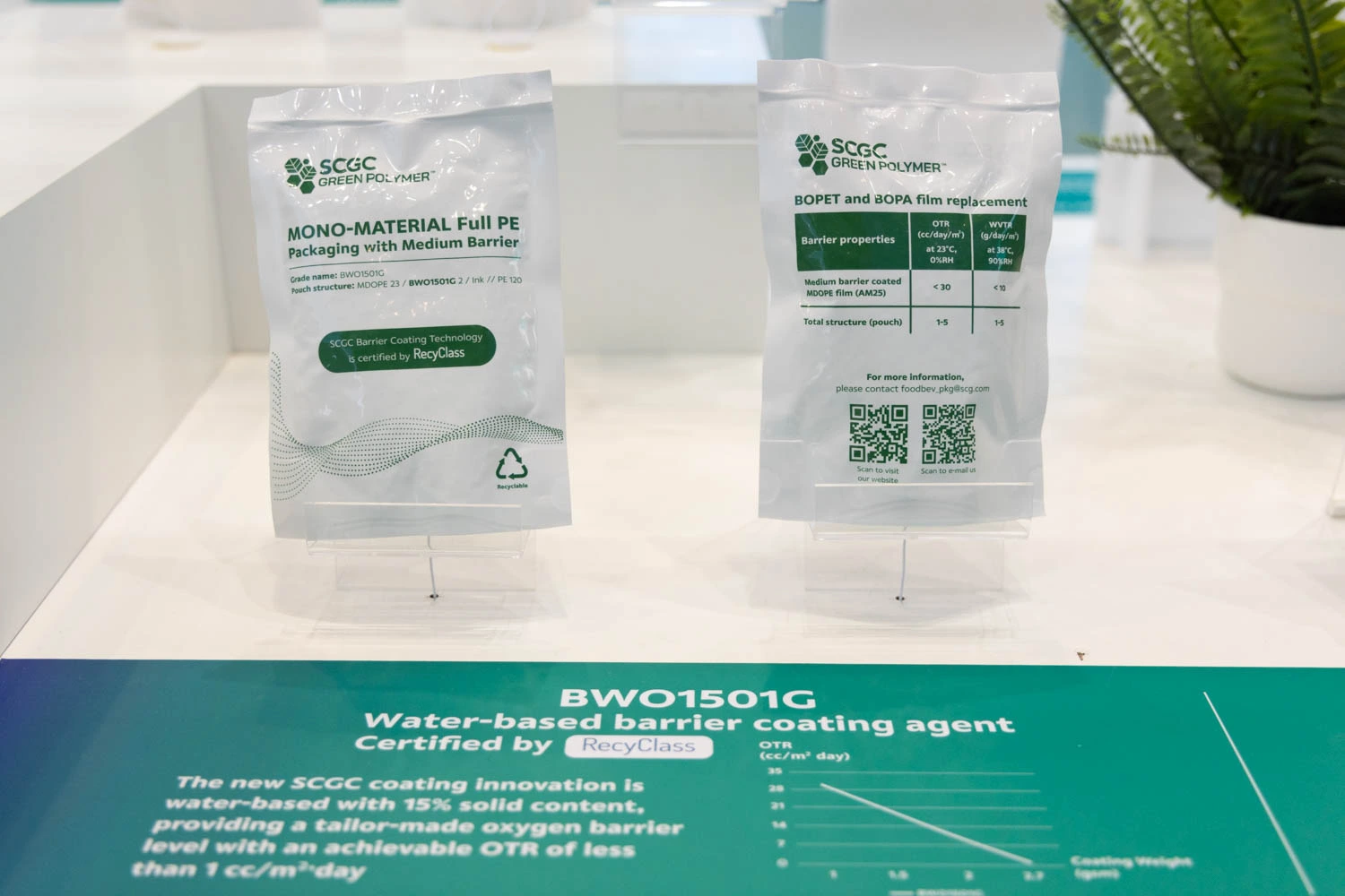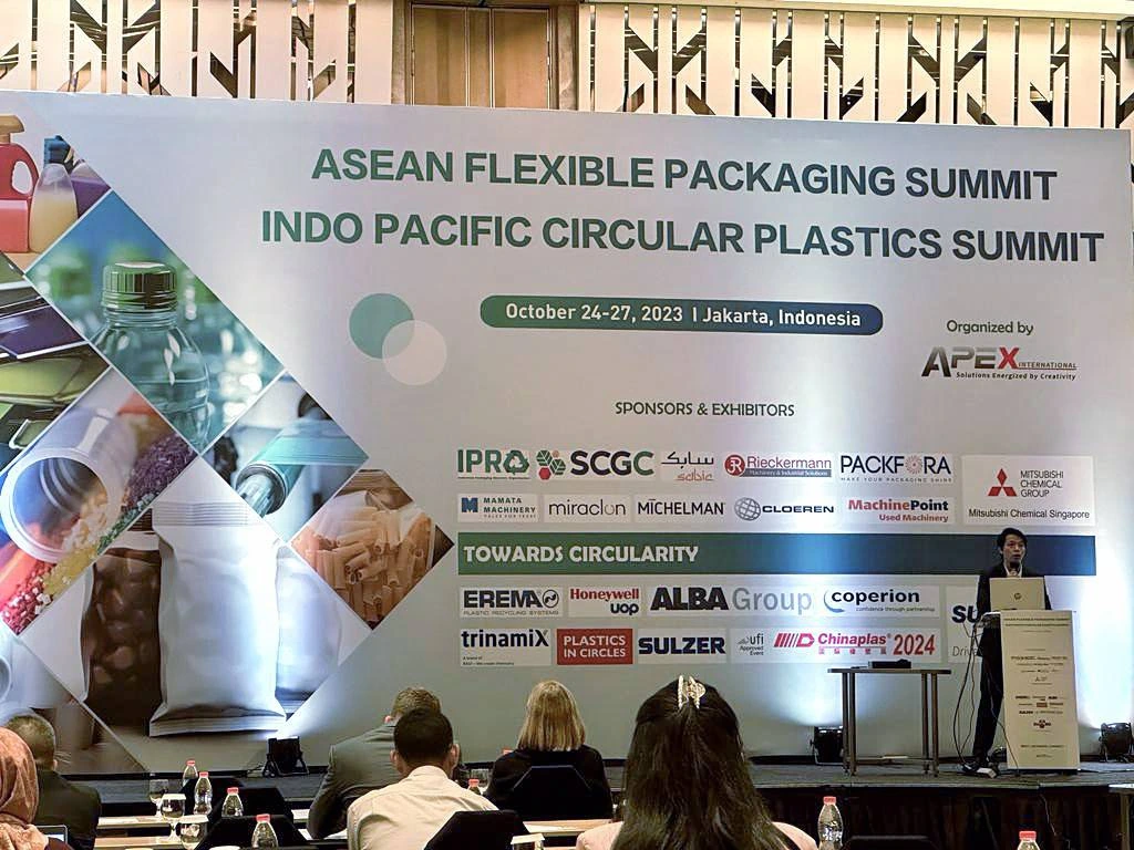 This year’s event takes place on 24 – 25 October 2023 in Jakarta, Indonesia with SCGC's experts joined as speakers in the session "Innovative Oxygen Barrier Coating Technology to enable Recyclable Packaging”. SCGC showcased their innovation, the SCGC GREEN POLYMERTM brand, specifically the "Air Permeation Barrier Film Coating Technology, Grade BWO1501G". This technology is certified by RecyClass as the ASIA’s 1st Recyclable Barrier Coating Technology for PE Flexible. The presented technology allows packaging to transform from multi-material to mono-material, while maintaining efficiency in preventing air permeation similar to traditional packaging and enables the recycling of packaging with high efficiency.