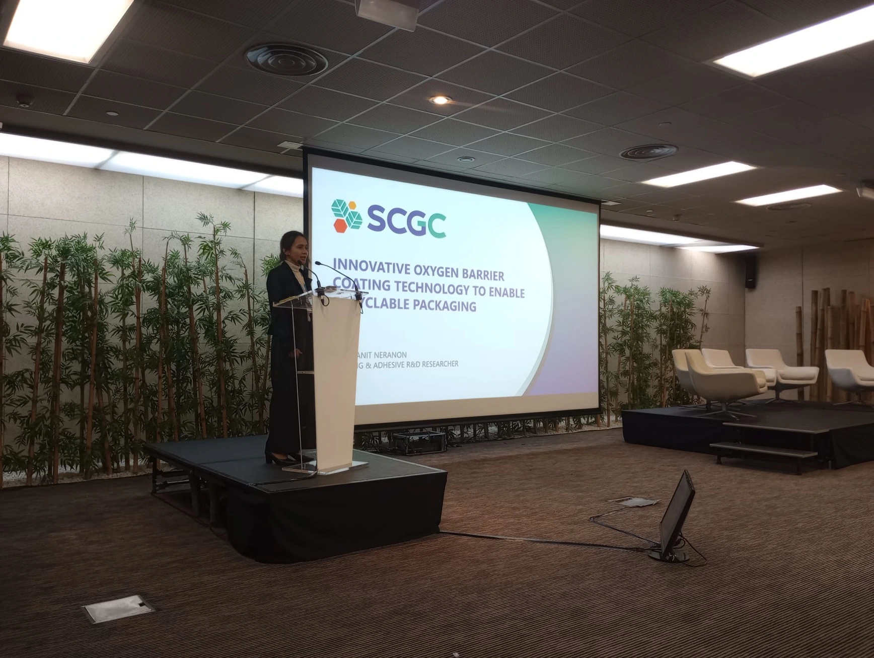 SCGC presented the Barrier Innovation for recyclable flexible packaging at the ‘Multilayer Flexible Packaging’ conference on November 21-22, 2023, in Barcelona, Spain, followed by the ‘World Plastics Innovation Summit’ on November 23-24, 2023, in Berlin, Germany. Both events, organized annually in Europe by Applied Market Information (AMI) and Luxatia International, aimed to showcase diverse innovations related to current global trends. The emphasis was on sustainable plastic innovations, including materials for recyclable packaging and recycled plastic pellets, particularly Post-Consumer Recycled (PCR) plastics.