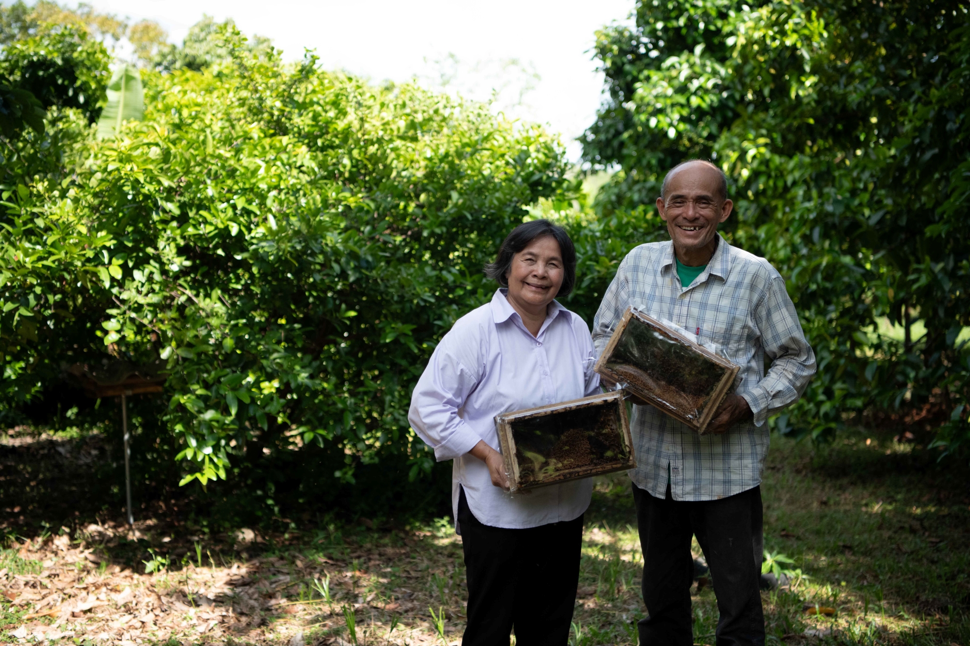 On the Path to Creating Value: From raising stingless bees in backyard gardens and sharing knowledge among the elderly to the day when the enterprise group allowed SCGC to help manage the network of stingless beekeepers, the group became more widely recognized. The result was not only an increase in the number of stingless beekeepers but also wider recognition of the enterprise's products. SCGC brought in experts to expand knowledge, tested the properties of the honey produced, and prepared to elevate the products to become signature goods of Rayong Province.