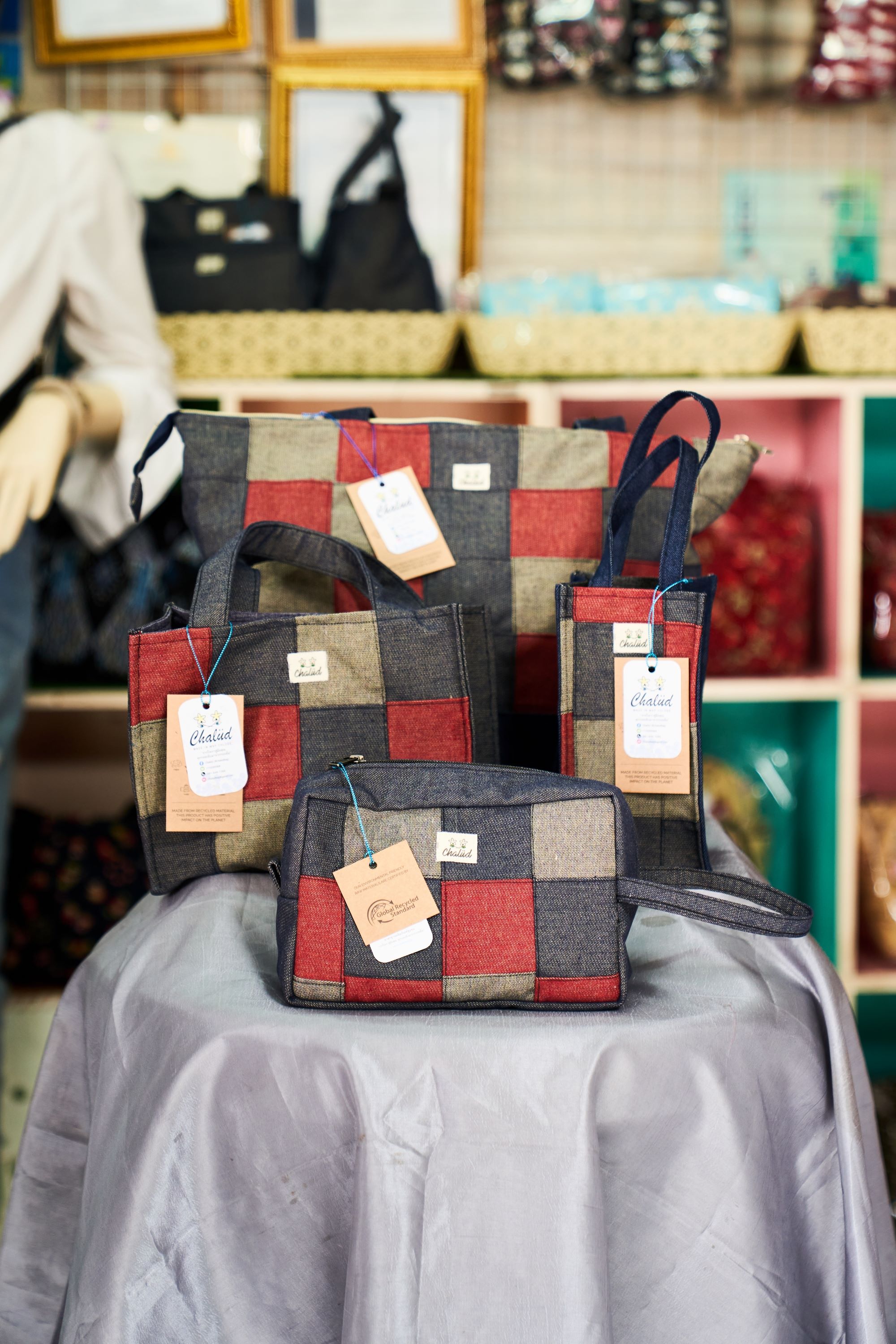 With attention to every detail, not just concerning the products but also the well-being of the group members, To noticed that each housewife who came to work faced similar limitations: the responsibility of taking care of the household, whether it be looking after children, caring for the elderly, or other family members. Thus, To again adjusted the product line to reduce sewing time, allow work to be done from home, and produce high-value items. This led to the creation of the “Chalüd fabric bags.”
