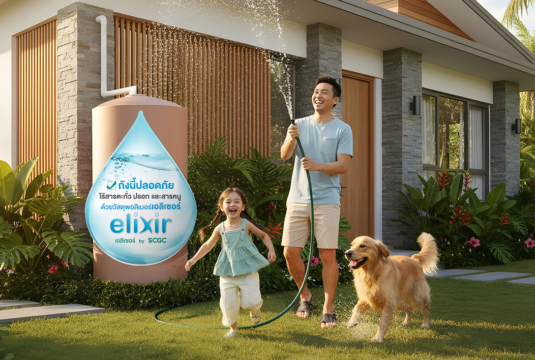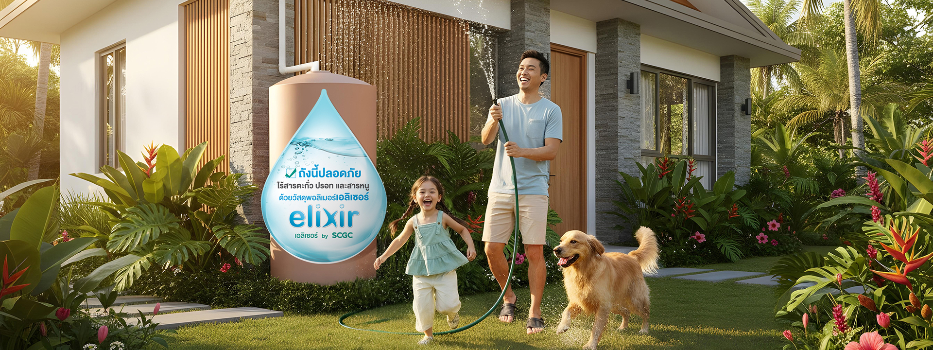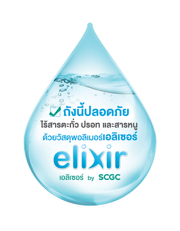elixir™เอลิเซอร์ (elixir™) คือวัสดุพอลิเมอร์คุณภาพสูงสำหรับผลิตถังเก็บน้ำของ SCGC มีความปลอดภัยและทนทานสูง ตัววัสดุสามารถสัมผัสอาหารได้ (FCM) ตามมาตรฐาน FDA และ EU ปลอดจากโลหะหนัก เช่น ตะกั่วและปรอท รวมถึงสารหนู ได้รับการรับรองจาก SGS ตามมาตรฐานยุโรปและมาตรฐาน มอก วัสดุนี้ยังมีสารป้องกัน UV เพื่อเพิ่มความทนทาน และมีคุณสมบัติต้านแบคทีเรียและตะไคร่น้ำ ช่วยให้การเก็บน้ำสะอาดและไร้กลิ่นอ่านเพิ่มเติม